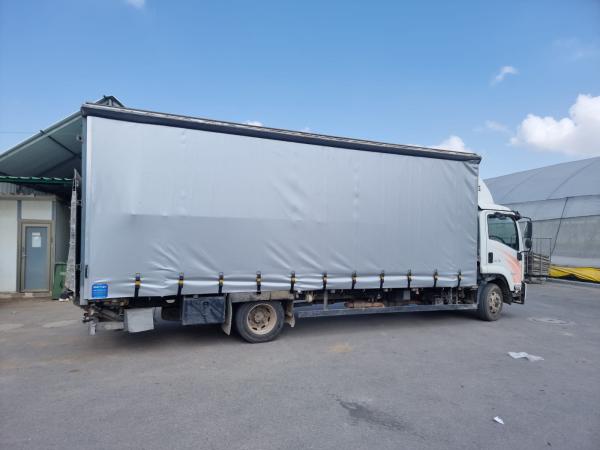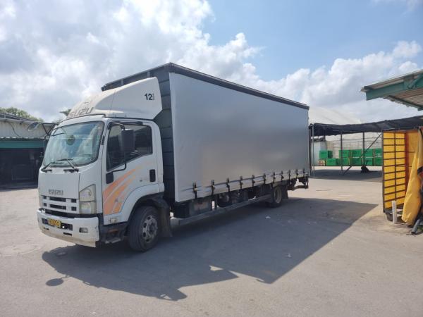 חדישה ומתקדמת מסוג איסוזו, המצוידת בארגז סגור ווילון באורך 7.5 מטר, רמפה אחורית